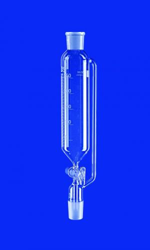 Borosilicate glass 3.3. Cylindrical shape, with pressure equalizing tube. With NS socket and interchangeable PE stopper, plug with retaining device. With solid glass key or PTFE key.
